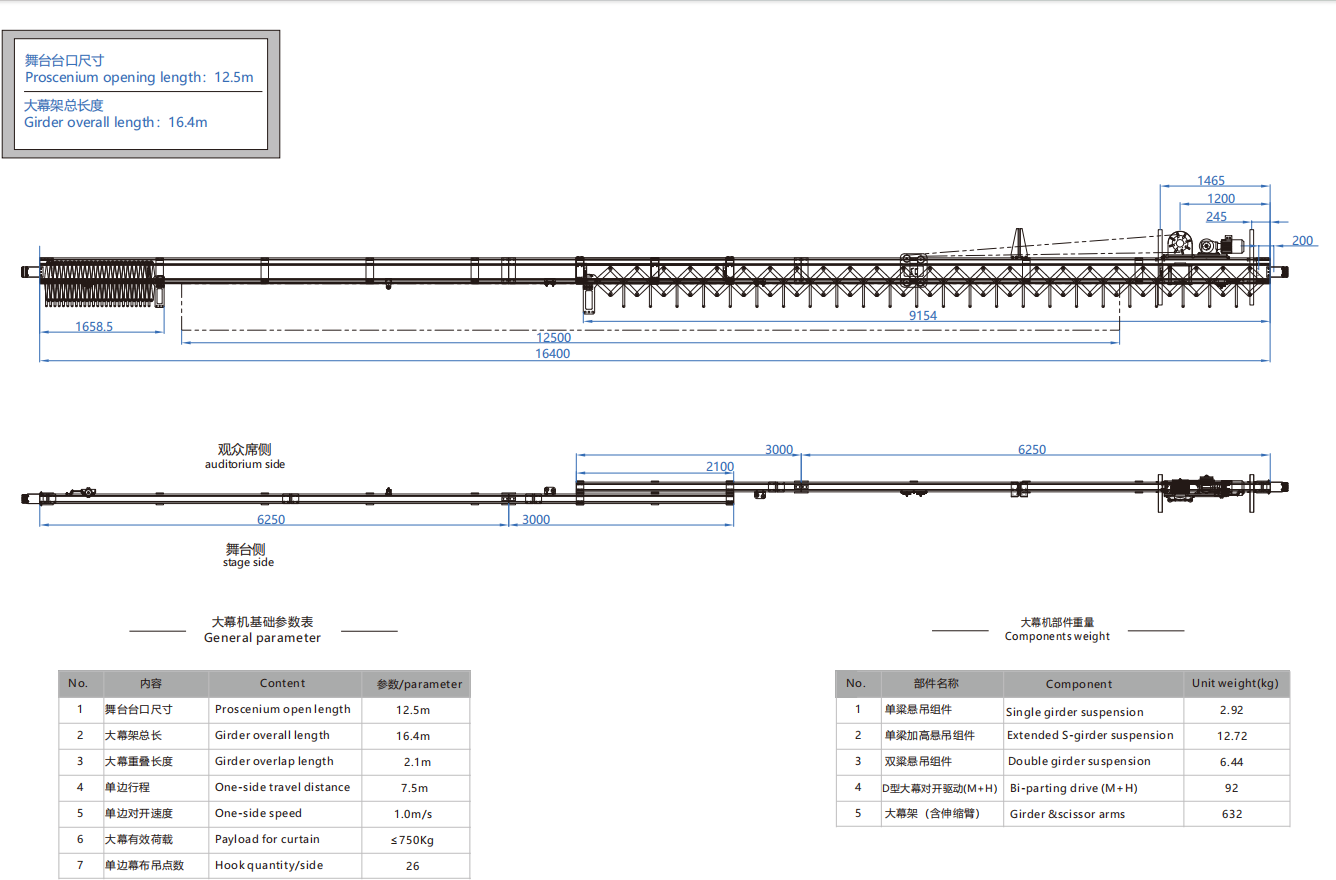大幕机选型图 12.5m/16.4m